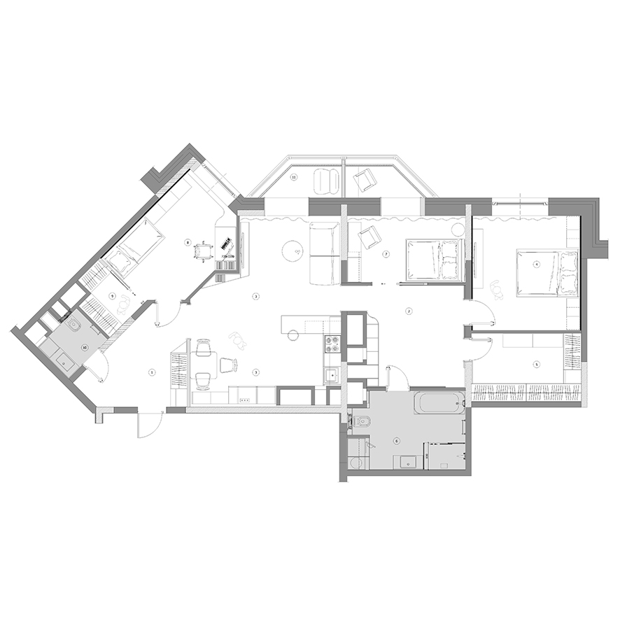 - selection of furniture and light, decor for your project (complete set: Three main options of a complete set and design of finishing are offered: CLASSIC, ELEGANCE and AVANTGARDE;